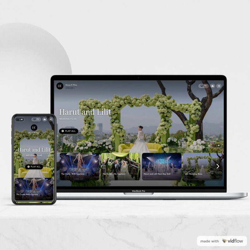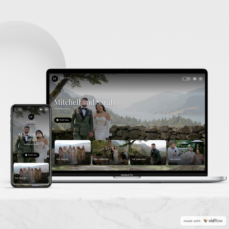 VidFlow has built a client-facing platform that is visually stunning and, more importantly, easy for my clients to use. The last thing I want for my couples is for them to struggle to watch their films or feel embarrassed about showing the site to their friends and family because it’s not user-friendly or lacks the aesthetic they paid for. Vidflow has made it quick and easy for me to turn around to my clients, customize it the way i want, match my branding, and deliver a link that my client’s love.